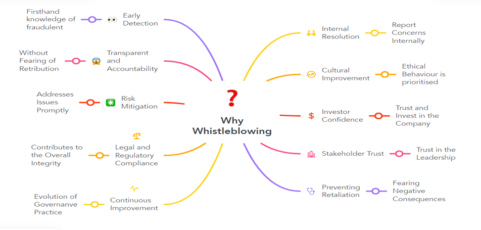 Whistleblowing often helps in getting firsthand knowledge of fraudulent, corrupt, or unethical activities happening within a company. Providing whistleblowers with protection ensures that these issues can be identified and addressed early, preventing potential harm to the organisation and its stakeholders.